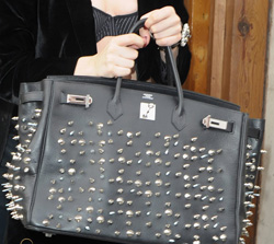 Lady Gaga, apparently, does. This isn’t much of a surprise and, although we haven’t covered much about her fashion on this blog (unlike her outfits, she is rarely seen with an interesting handbag), she has recently made news in regards to a Hermes Birkin bag she was carrying. While several celebrities carry Birkin handbags for their tote-meets-hobo style, Lady Gaga altered hers with several studs added to the body of the bag. The studs, all attached to the black leather at random, give the bag a punk look and shows how studded leather should be done. In fact, compared to the solid black of Gaga’s outfit, the handbag ends up standing out.